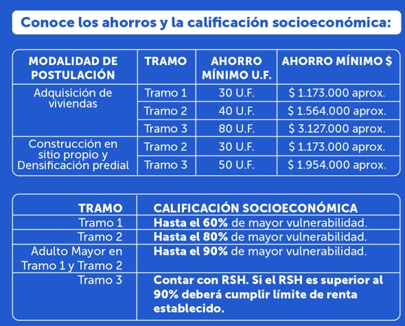 En esta tabla encontraras el ahorro mínimo en UF y en pesos: